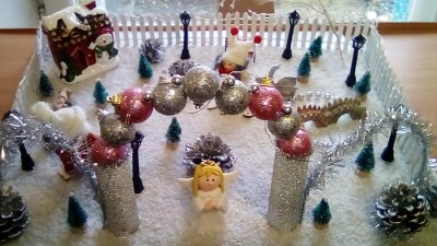 Образовательная область –художествено-эстетическое развитие. Тема: «Украсим руковичку-домик». В ходе образовательной деятельности дети учились рисовать узоры из прямых линий, создавать ритмическую композицию, используя технику рисования -чередование. Закрепили названий цветов (жёлтый, зелёный, синий).