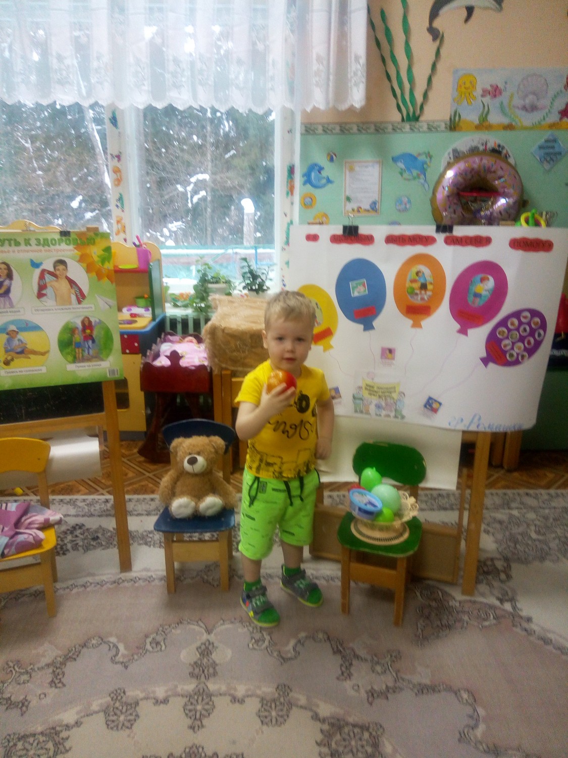 В рамках проведения недели здоровья, к ребяткам в гости приходил Мишутка, с которым ребята повторили, что нужно делать, чтоб быть здоровым.