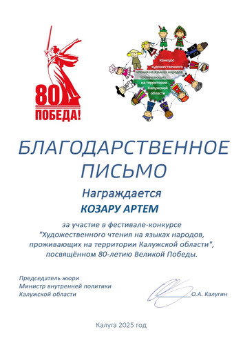 Благодарственное письмо