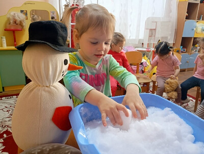 В младшей группе «Светлячки» прошёл увлекательный «День снега». Этот день стал настоящим открытием для малышей. Дети начали свое знакомство со снегом, исследуя свойства снега — проверяя, насколько он холодный, мягкий и легко тает от тепла.