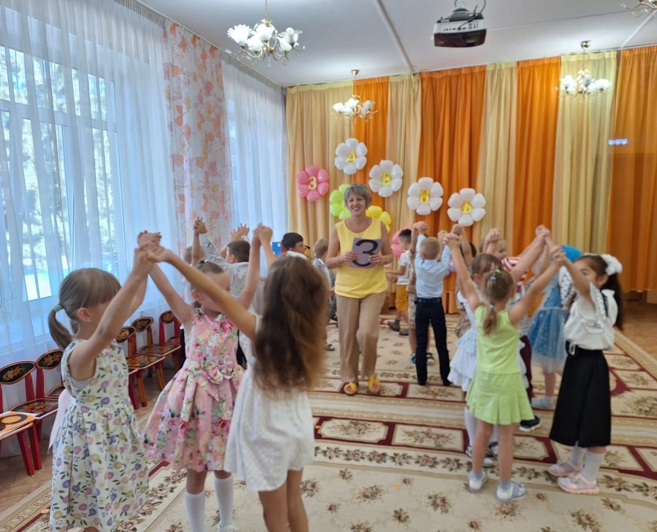 2 сентября состоялось тематическое музыкальное занятие "Первый праздник сентября". В гости к ребятам пришли Буратино и Мальвина с волшебным рюкзачком. На занятии ребята отгадывали загадки, исполнили танцевальную композицию и песню. Музыкальное занятие окончилось весёлой игрой "Соберись согласно цифре". | |