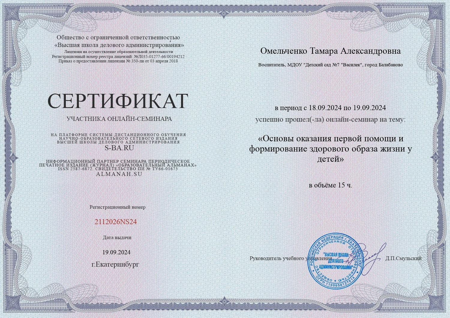 Омельченко Тамары Александровны