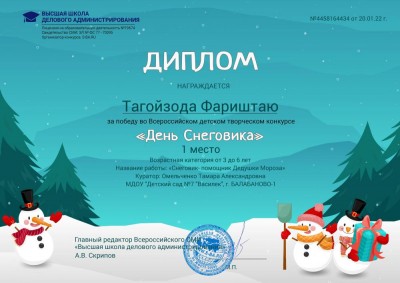 Всероссийский детский творческий конкурс «День Снеговика»