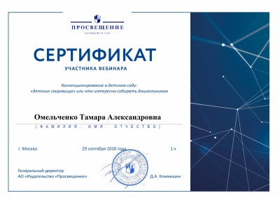 29 сентября приняла участие в вебинаре на тему : "Коллекционирование в детском саду: «детские сокровища» или что интересно собирать дошкольникам"