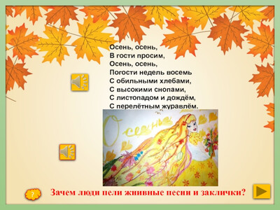 Чтение песенки -заклички «Осень, осень в гости просим»
